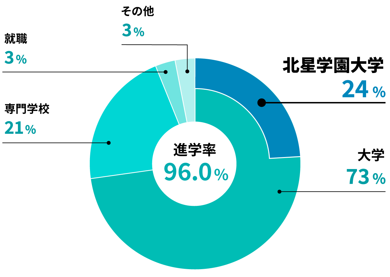 北星学園大学への進学においては、本校は他の高校に比べても非常に有利です。本校の大学入試状況は、北星学園大学への進学が毎年70〜80名前後となっており、ほぼ3人に1人の割合で北星大へ進学しています。附属校のみを対象とした説明会やオープンキャンパスが開かれています。
